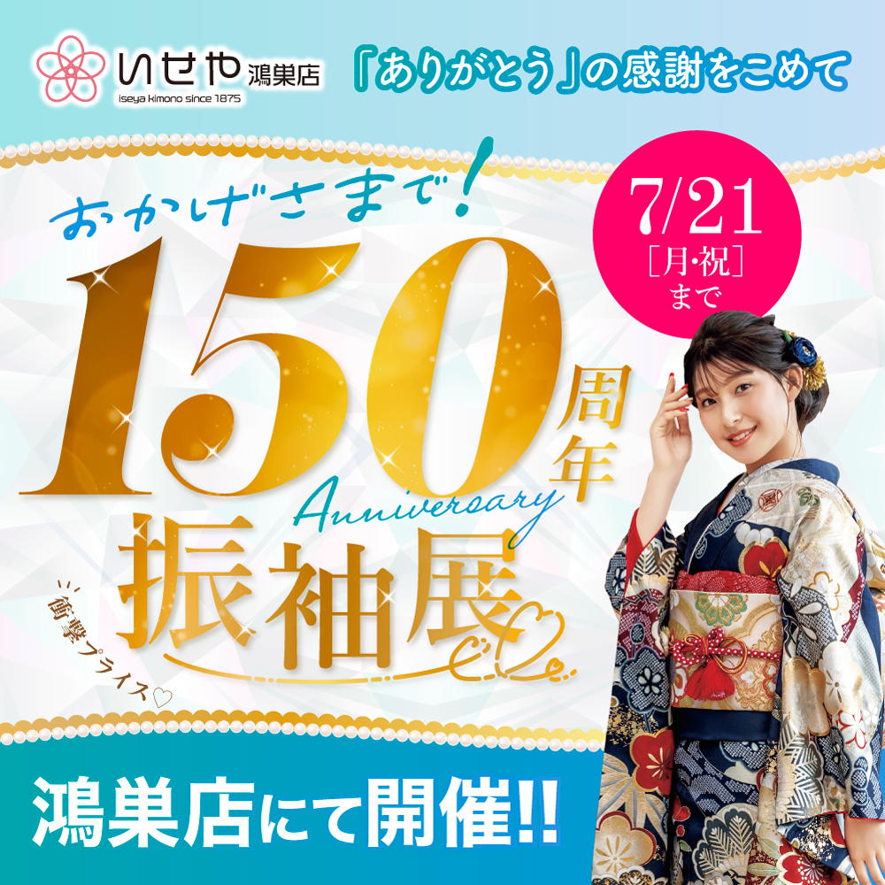 日頃よりいせや呉服店グループをご愛顧いただきありがとうございます。私たちいせや呉服店は、創業から150年という大きな節目を迎えることができました。長きにわたり私たちを支えてくださった地域の皆さま、お客様一人ひとりに心よ...