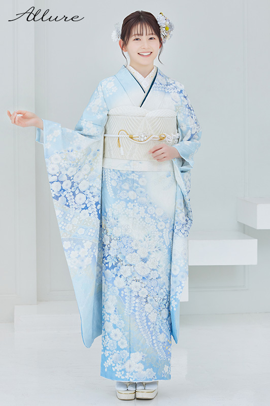 なえなのの振袖 インフルエンサー「なえなの」が着こなす振袖。「誰もがヒロインになれる」がテーマの透明感たっぷりの洋風レトロなコレクション。
