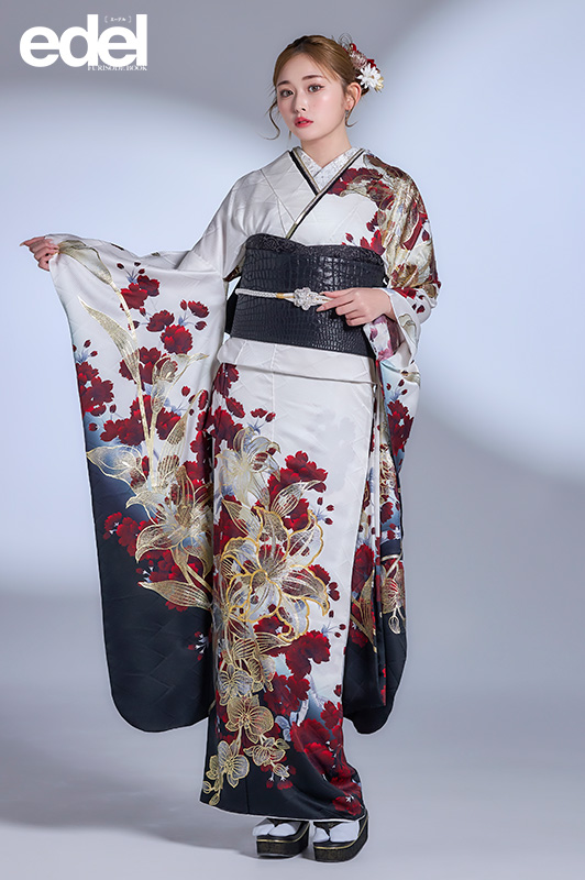 edel おしゃれな振袖をお探しの方におすすめの「エーデル」 定番とは一味違う、シックな個性が輝くエレガントスタイルを演出します。