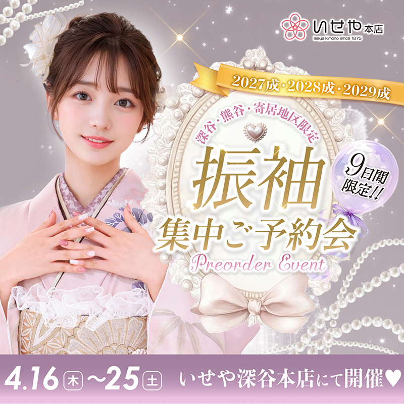 現在、いせやでは新学年を前に振袖選びをスタートされるご家族様で賑わっております。「まだ早いかな?」と思っている2027年・2028年・2029年度成人の皆さま、実は「3月の今」が、一番賢く・可愛く振袖を選べる絶好のタイ...