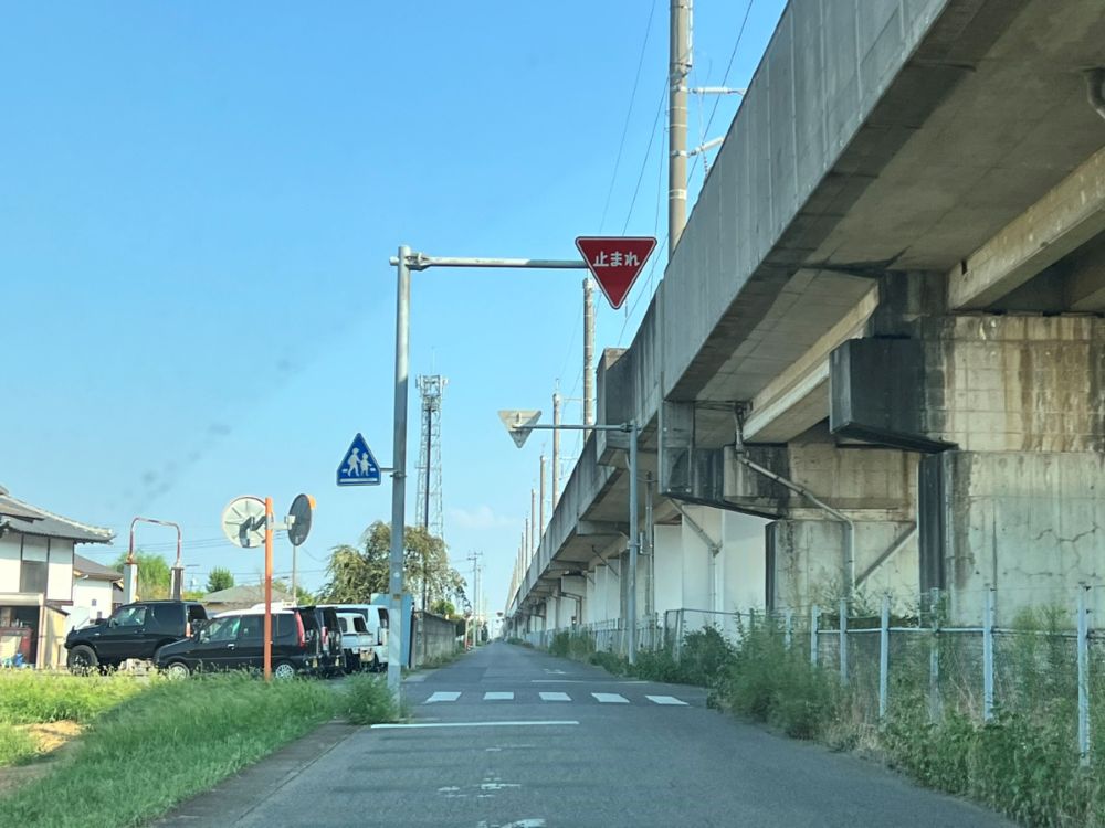 その高架下を左折し、「止まれ」の標識まで進みましょう。