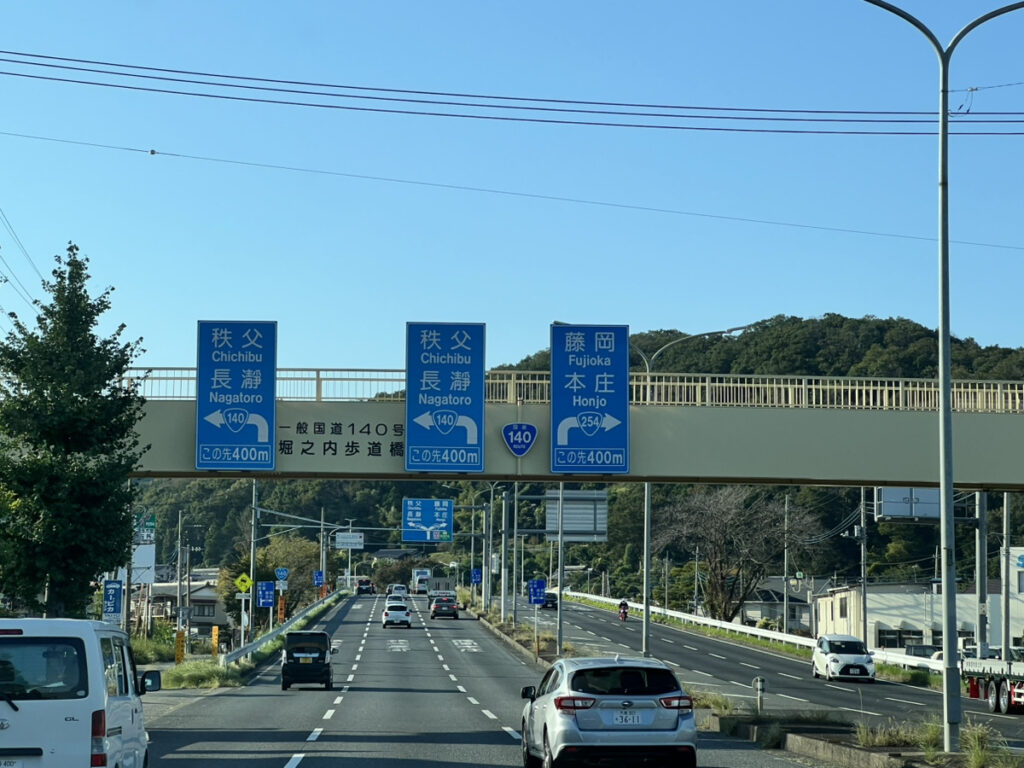 国道140号線に入ったら、そのまま寄居、長瀞方面へ向かってしばらく直進します。