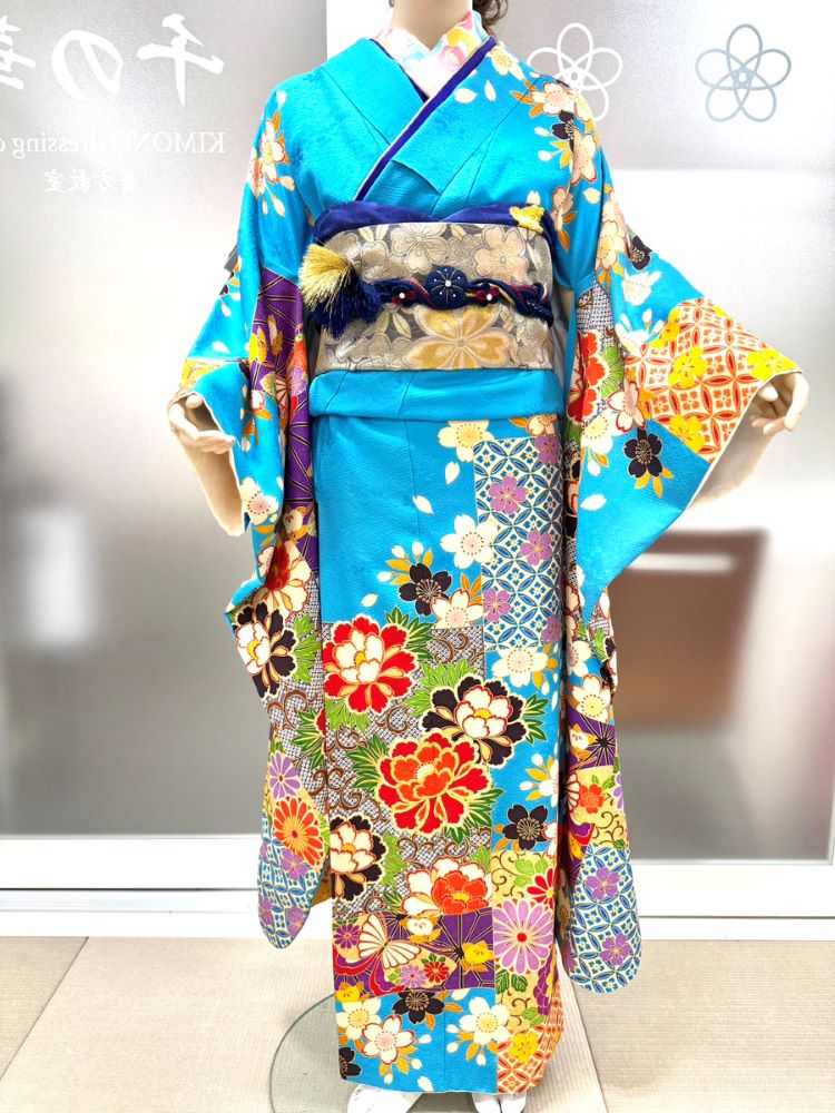 3. 【今週のイチオシ】鮮やかなブルーに咲き誇る吉祥の花々 – 成人式を彩る豪華絢爛な振袖【アリオ深谷会場】
