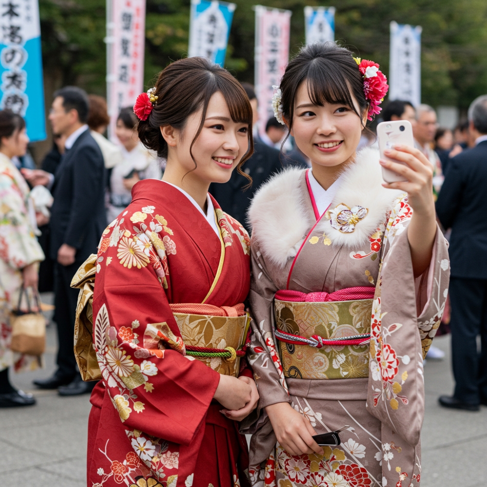 成人式当日は友達と自撮りしたり、スマホで撮るくらいで十分!」