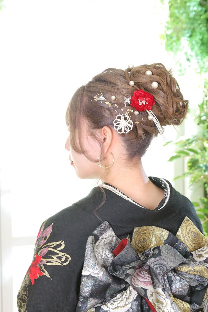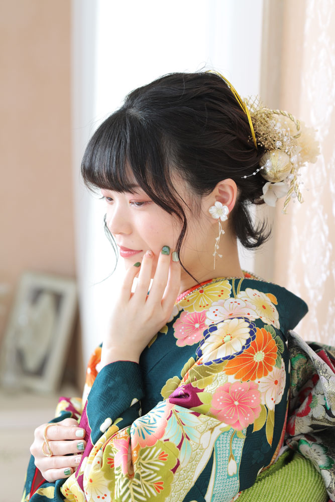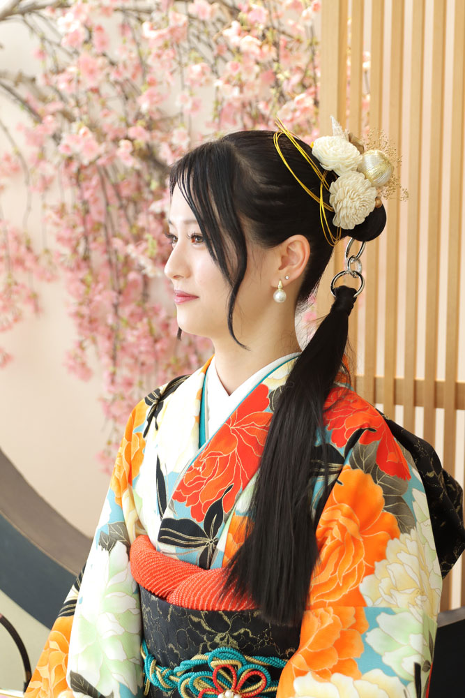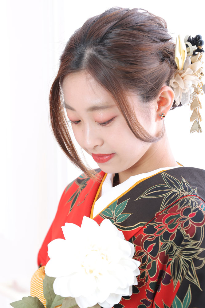 よく見える場所なので、耳元に飾りを付けると、飾りも目立ち、おしゃれに振袖を着こなすことができます!