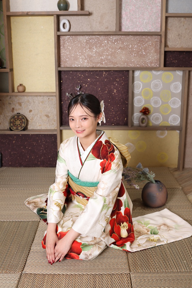 全身写真も振袖全体がよく見えるので人気ですが、こちらは振袖の『和』の要素を強く出した着物ならではのお写真になります♬