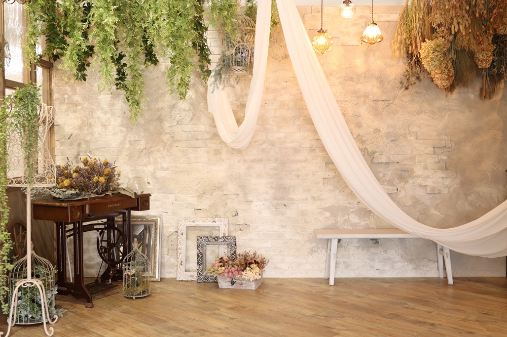 他にもドライフラワーやブラウンを基調としたアンティークな雰囲気の背景も!