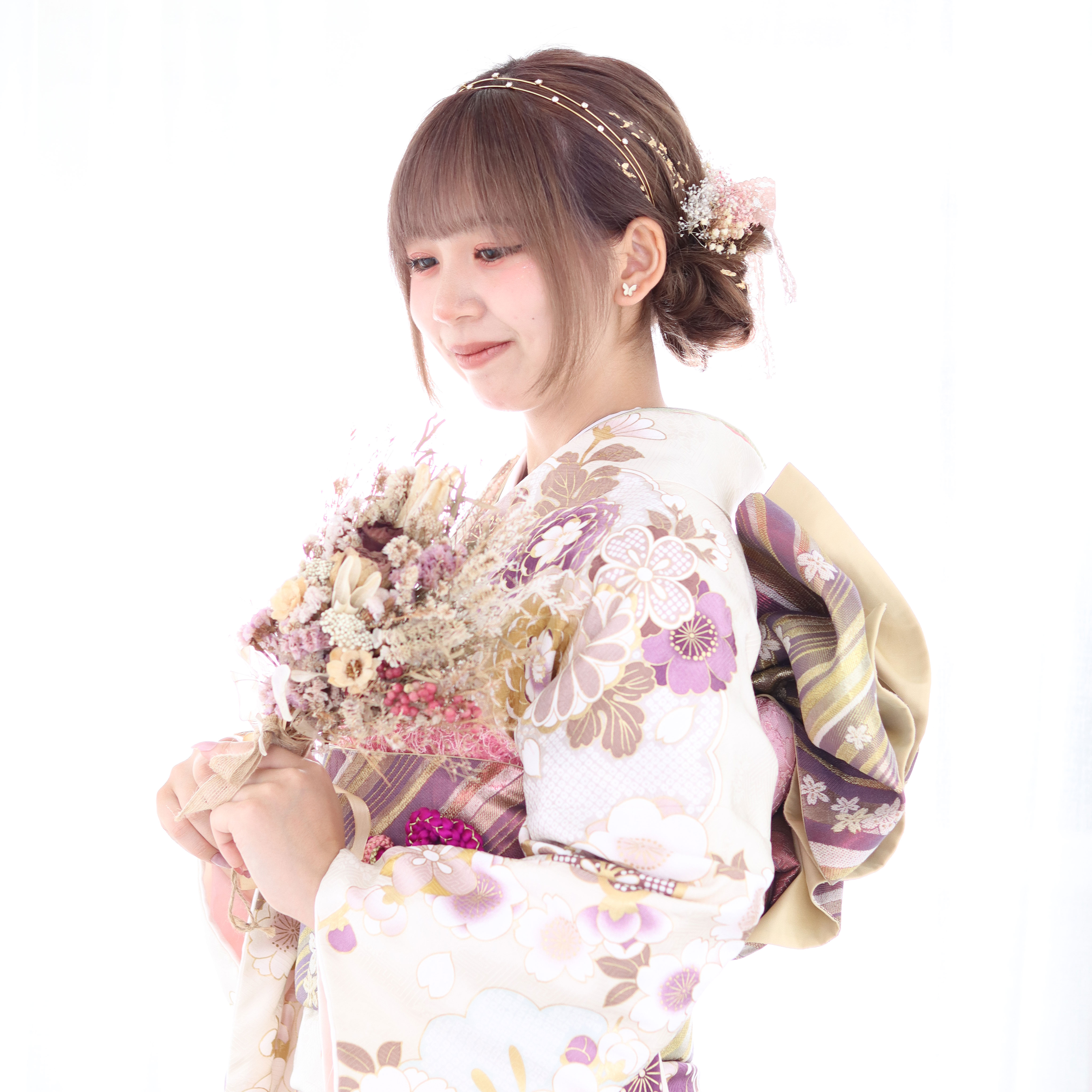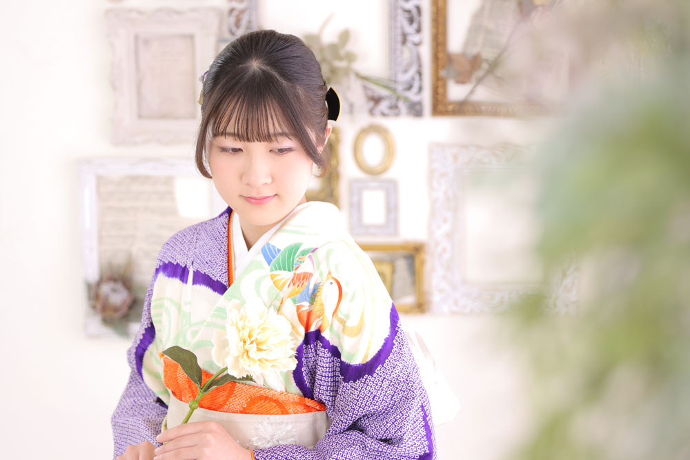 清楚で凛とした美しさを放つ「白」。何色にも染まらない純粋さや清潔感は、新たな門出を迎える二十歳の女性にぴったりです。「白紙に戻って未来へ羽ばたく」という意味合いも込められています。