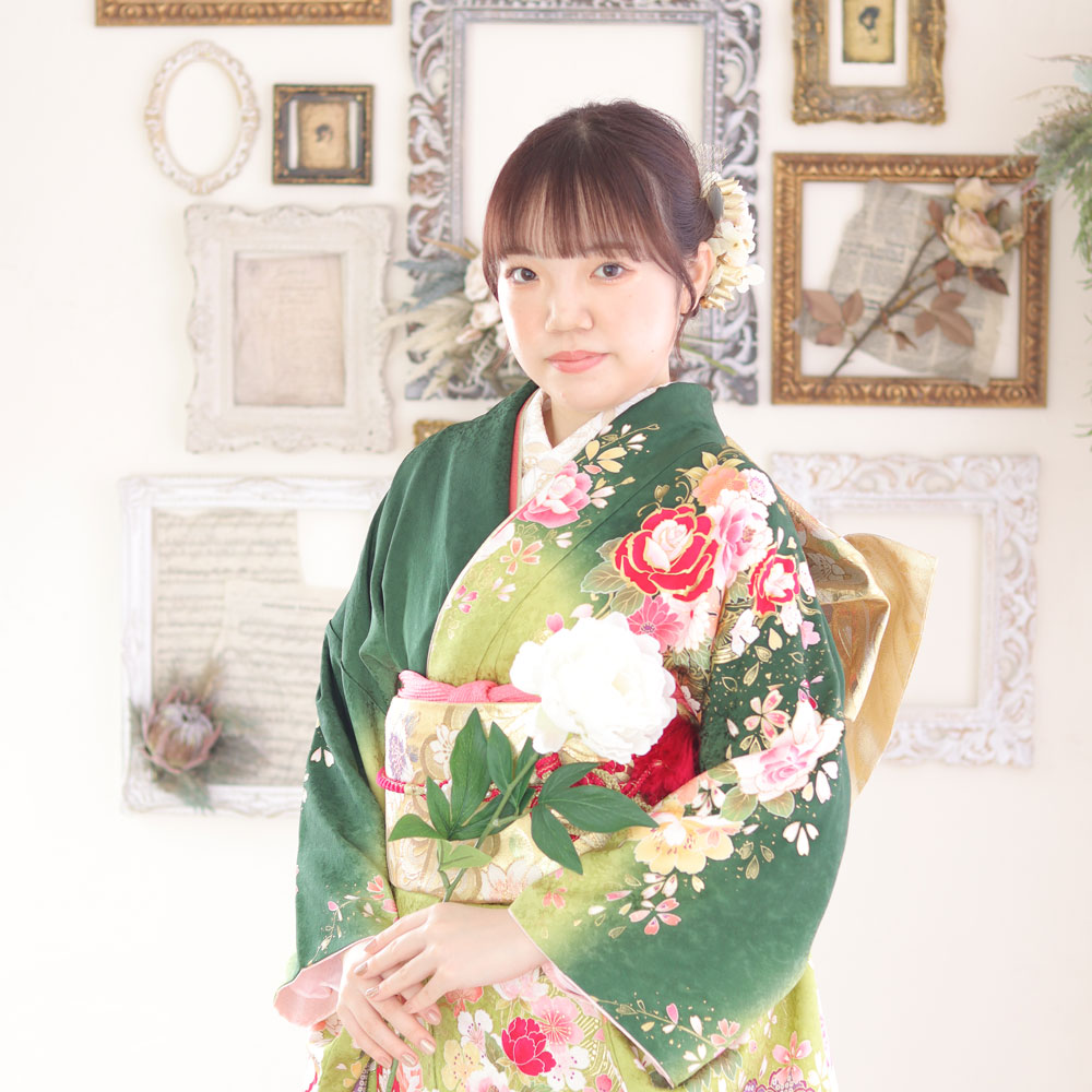 ここ数年で人気が急上昇し、今や定番カラーになりつつあるのが「緑」系の振袖です。