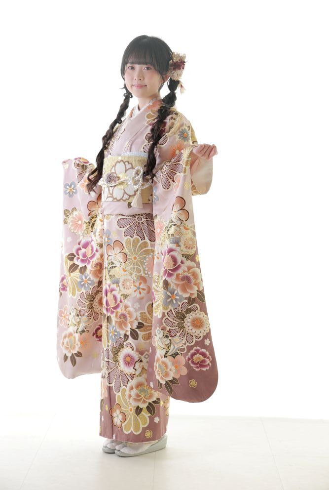 くすみピンクの振袖は、可愛さと大人っぽさを両立させたい方にぴったりのカラー。