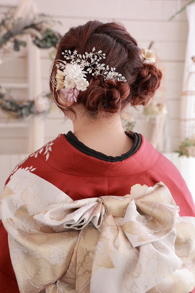 ●ドライフラワーやちりめん飾りで振袖とのコーディネートも◎