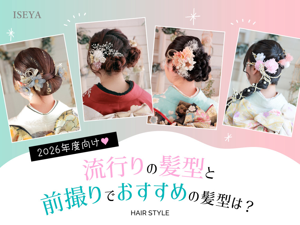 どのヘアスタイルが自分に合うか迷っている方は、撮影前にスタッフと一緒に相談しながら決めましょう♪成人式という人生に一度の特別な節目。前撮り写真は一生の思い出になる大切な1枚です。だからこそ、トレンド感がありながらもお嬢様の個性を引き出す“運命のヘアスタイル”に仕上げたいですよね。