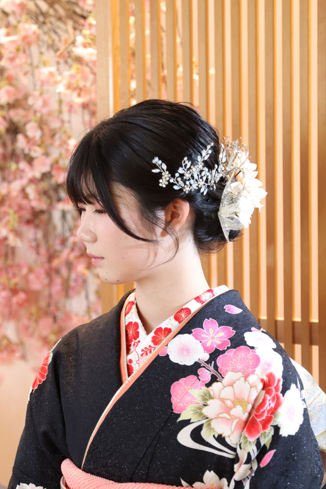 また、髪飾りの付け方もイメージは考えておいていただくとスムーズで、後悔しないヘアセットができます。