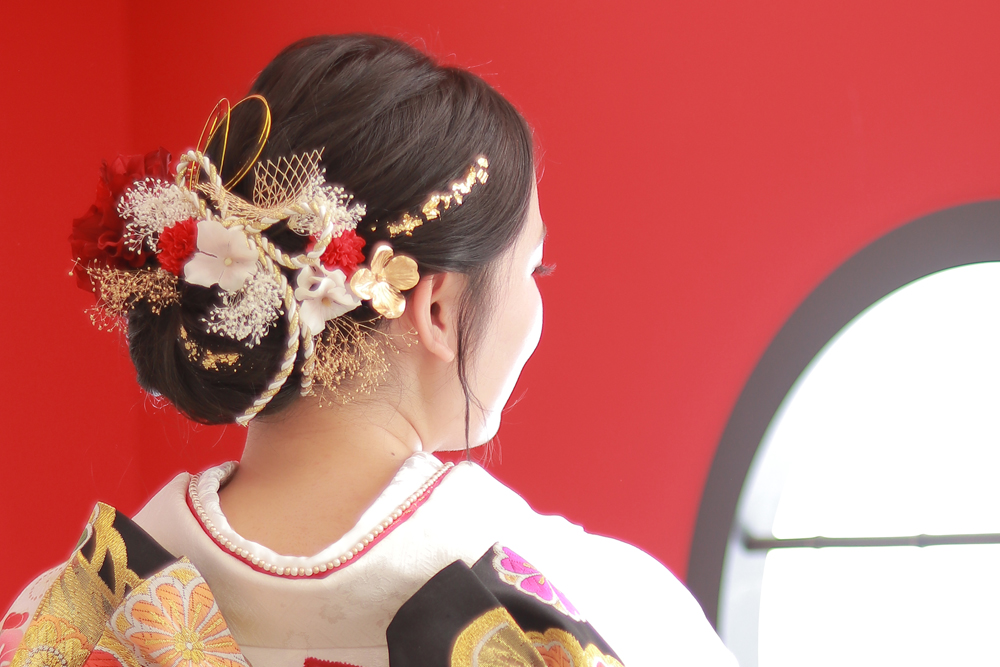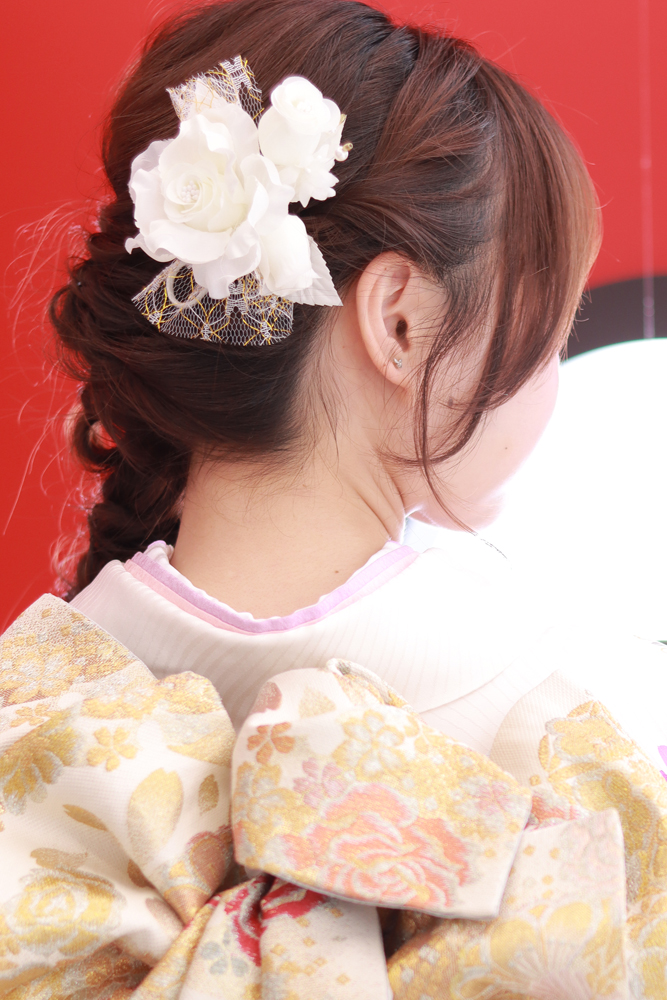 振袖の上品な雰囲気ともよく調和し、髪飾りの華やかさを引き立てる効果もあります!