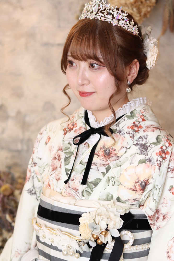花柄の振袖は、色使いや花の配置によって印象が大きく変わります。大輪の花が大胆に配置されたものは華やかでモダンな印象に、小花がちりばめられたものは可憐で可愛らしい印象になります。ご自身のなりたいイメージに合わせて選んでみましょう!