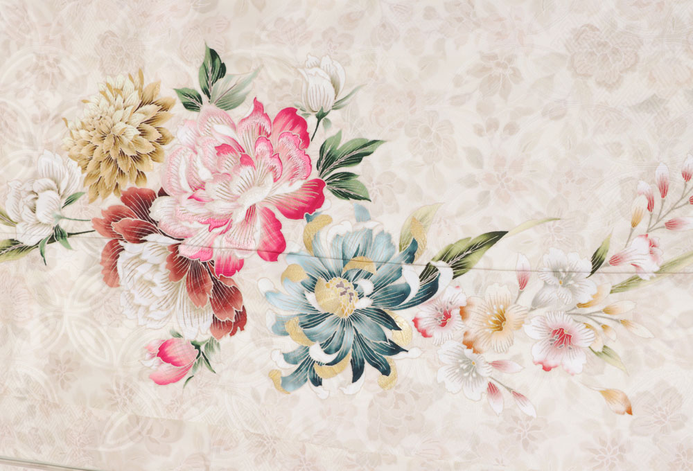 「百花の王」と呼ばれるほど、美しく大輪の花を咲かせることから、豊かさや華やかさ、そして幸福を象徴しています。印象的なふっくらとした大きな花とは対照的に、つぼみは小さめであることから、「やがて大きく美しくなる」という、これからの成長や未来への希望を感じさせる意味も込められています。特に成人式にふさわしい柄とされています。