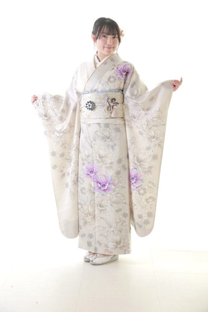 特におすすめなのは、くすみラベンダー × シルバー帯の組み合わせ。ほんのり甘くて品があるのに、人と被らない!帯締めに濃いめの紫や黒を合わせて、コントラストをつけるとキュッと締まってオシャレ上級者に見えますよ♪