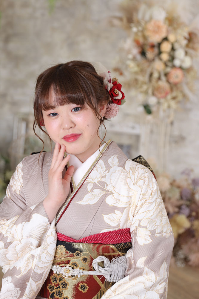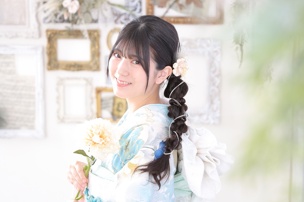 大人っぽく落ち着いた印象の面長さん。成人式では、その上品さを活かしつつ、華やかさをプラスするヘアスタイルがおすすめです!