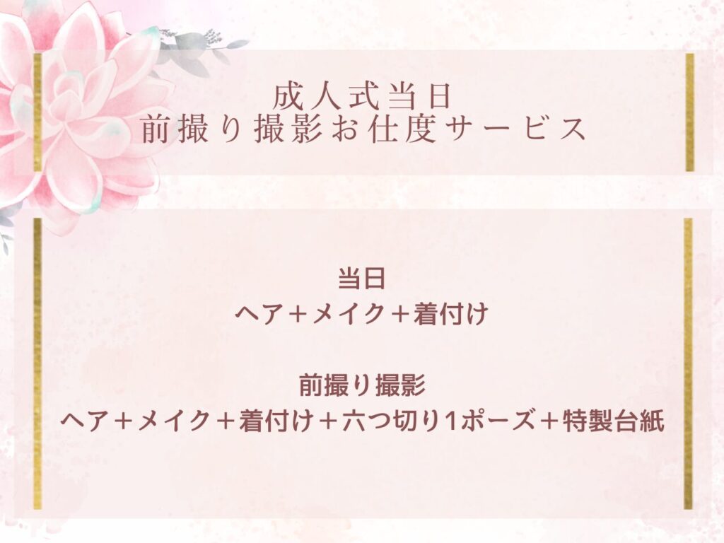 成人式当日も前撮り撮影もいせやにお任せください♪