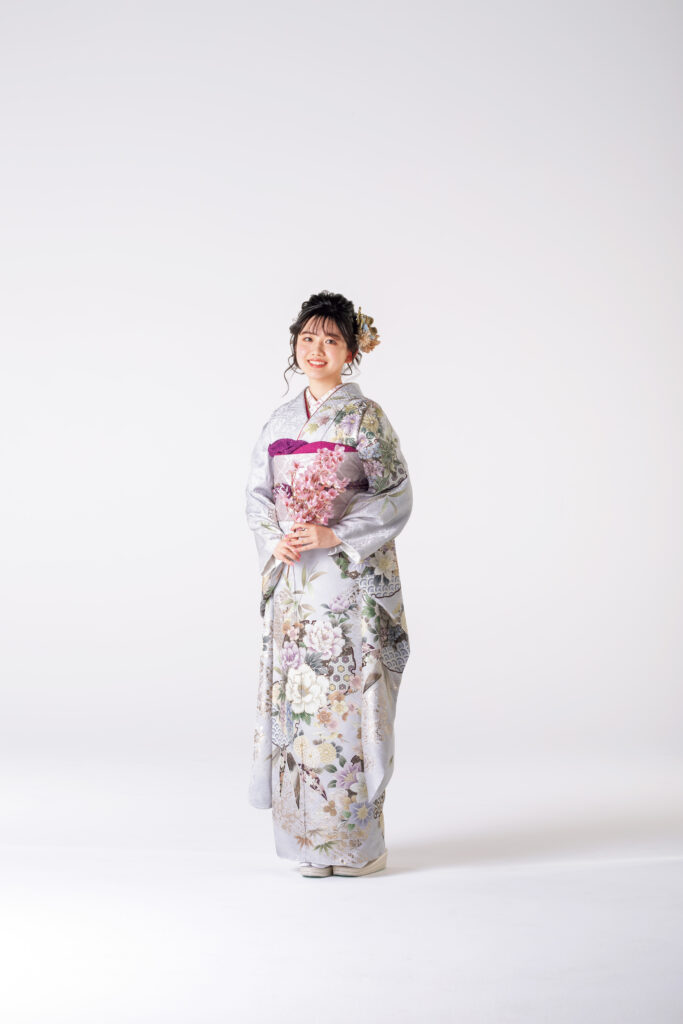 柄が少ないことで、振袖自体が持つ色や上質な生地の風合い(地紋)、そして最も重要な着る人自身の立ち姿や表情が際立ちます。振袖が「衣裳」として主張するのではなく、「着る人」を静かに、しかし格調高く引き立てる役割を果たします。