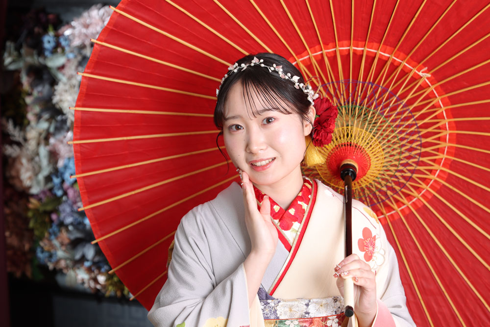 振袖の色や小物の色と合わせることで、コーディネートに統一感を出せます。