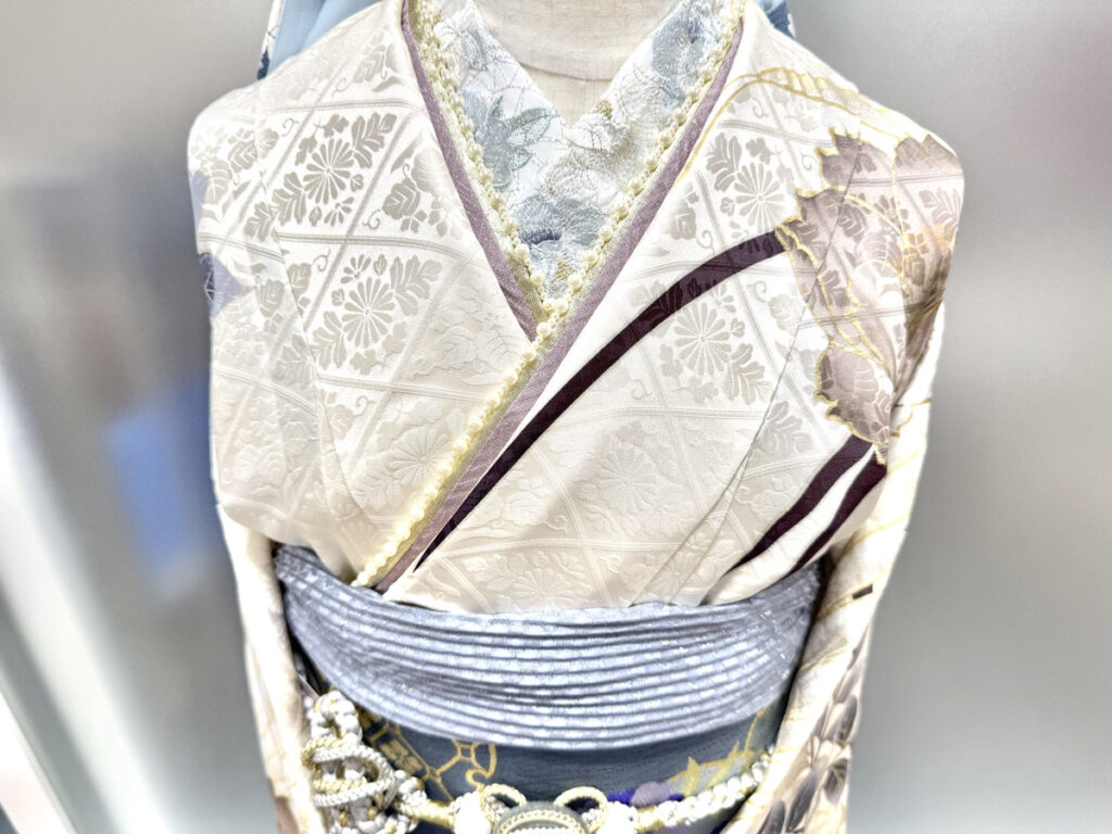 通常、半襟は白になりますが、顔に一番近い場所にあるため、刺繡やレースなどを付けて華やかにすることも可能です。