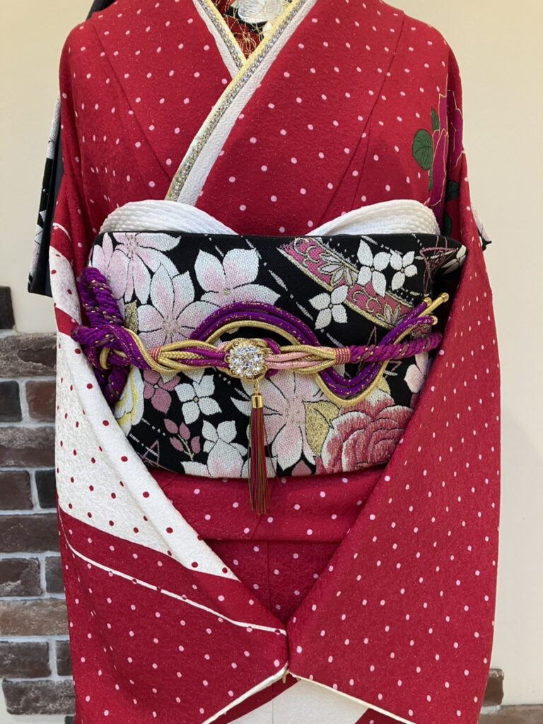キラッと光るラメ感が、 赤い振袖の中でさりげなく輝きます✨