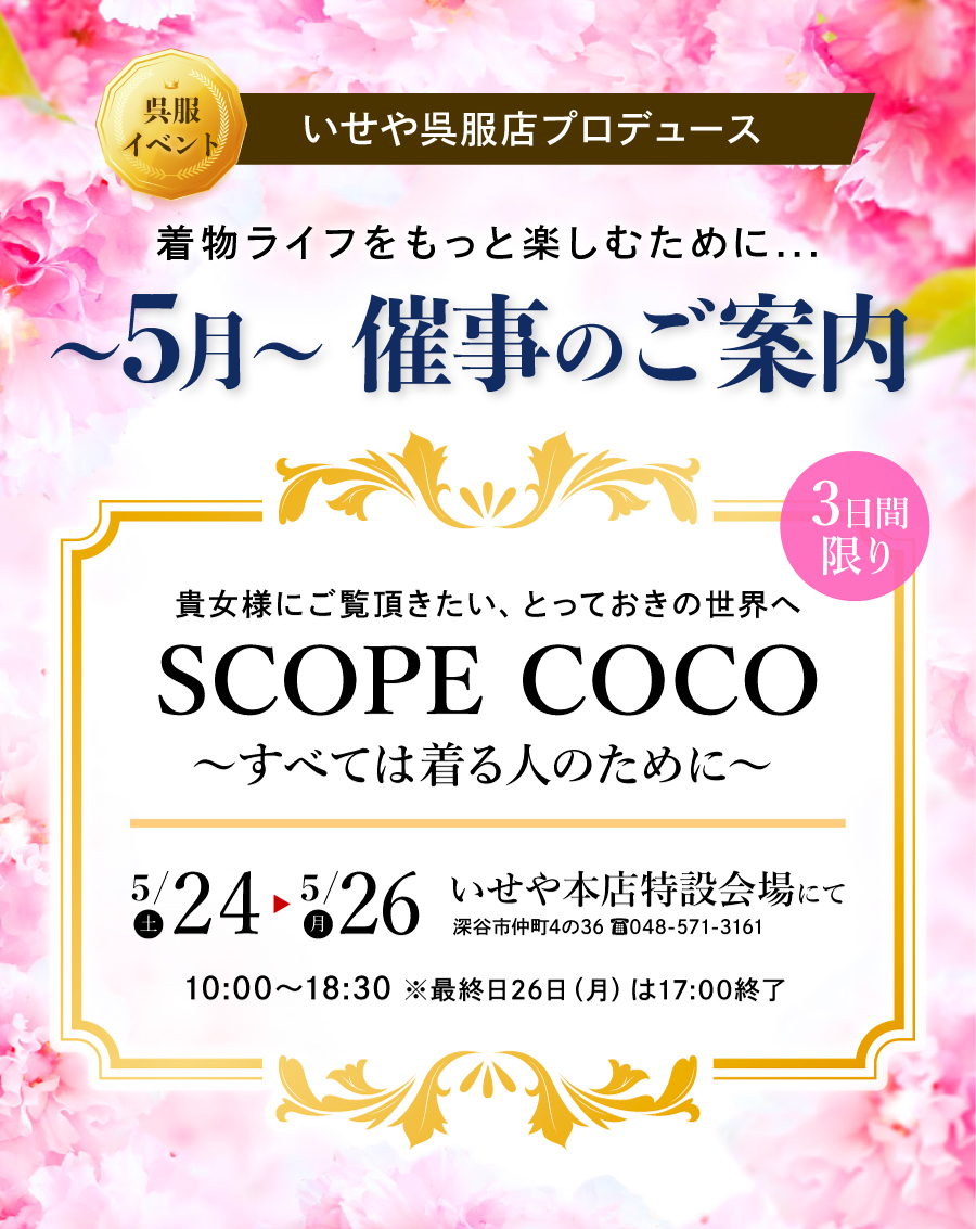 5/24-26 いせや深谷本店 「SCOPE COCO」開催!