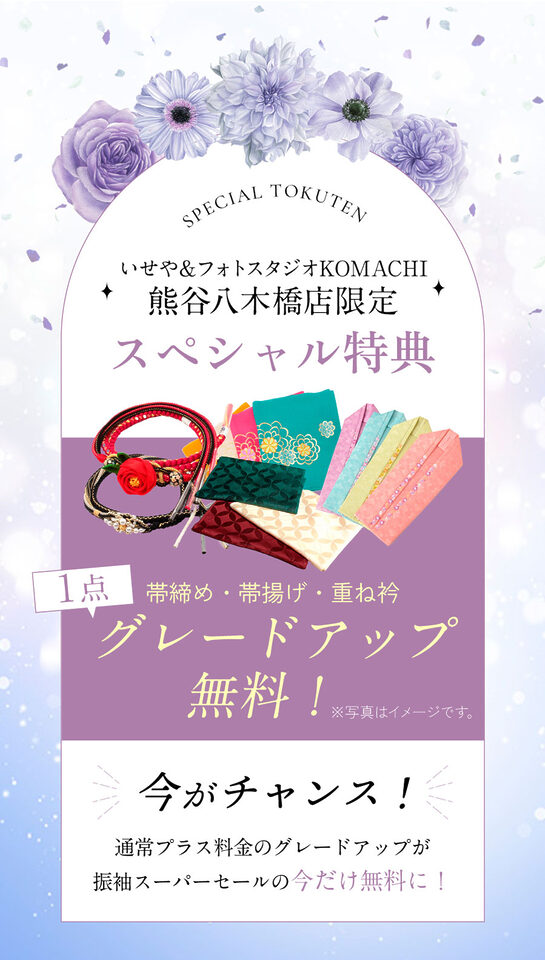 振袖SUPER SALE 「いせや&フォトスタジオKOMACHI熊谷八木橋店」にて開催中!