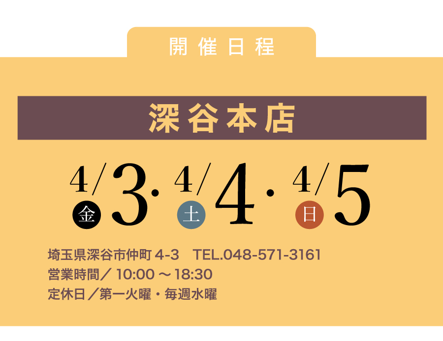 4/3-5 深谷本店「髪飾りの祭典」開催