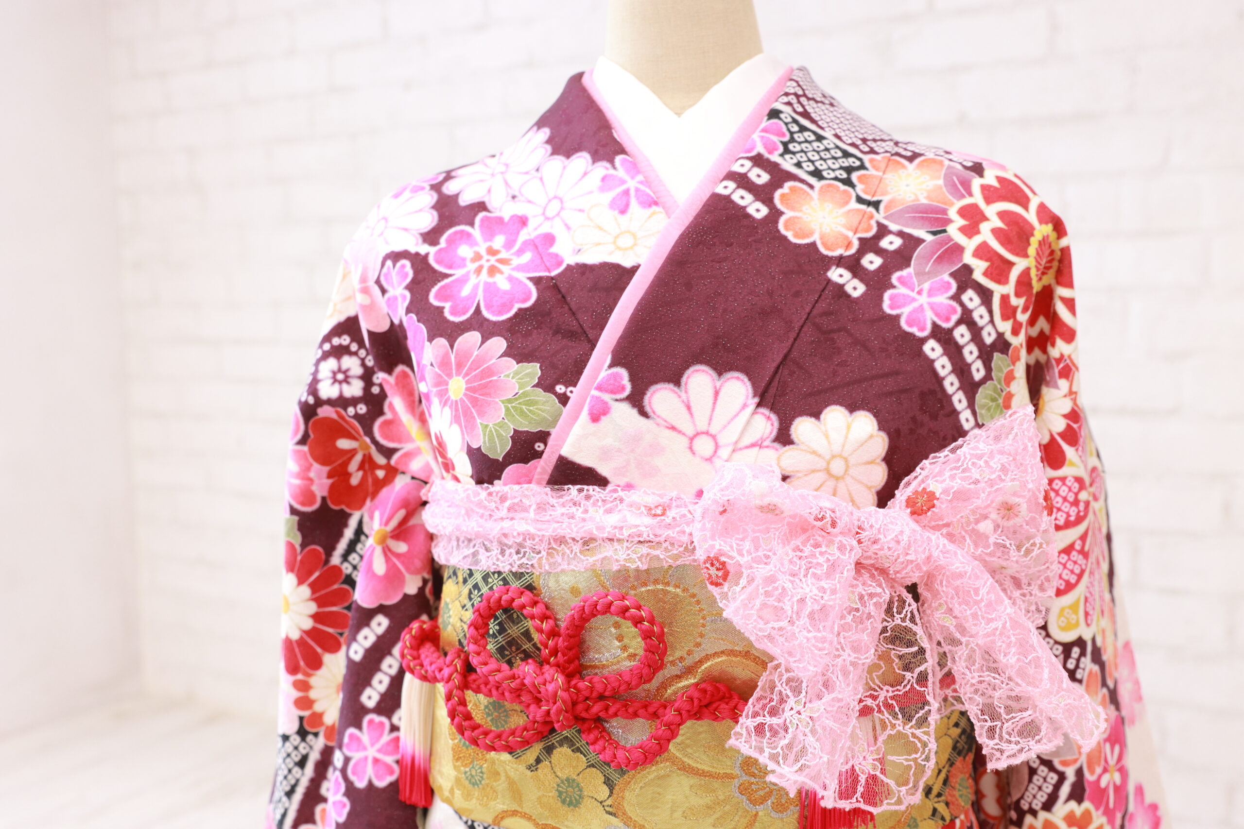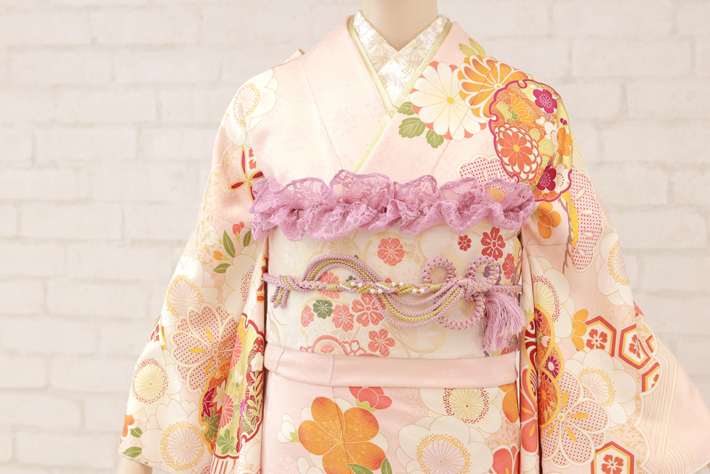 たとえばパールの帯締めと合わせて、帯揚げにレースを取り入れたりすると、今どき感も演出できます♪