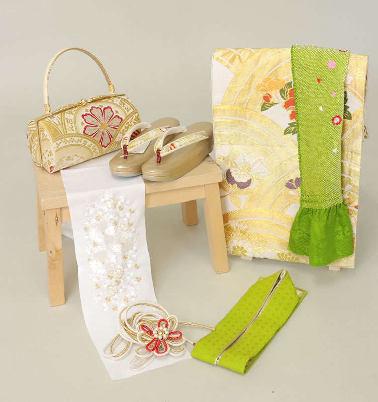 帯や帯締め・帯揚げ以外にも、襟元を彩る重ね衿や、足元を飾る草履バッグなど、小物選びはコーディネートの完成度を左右します。
