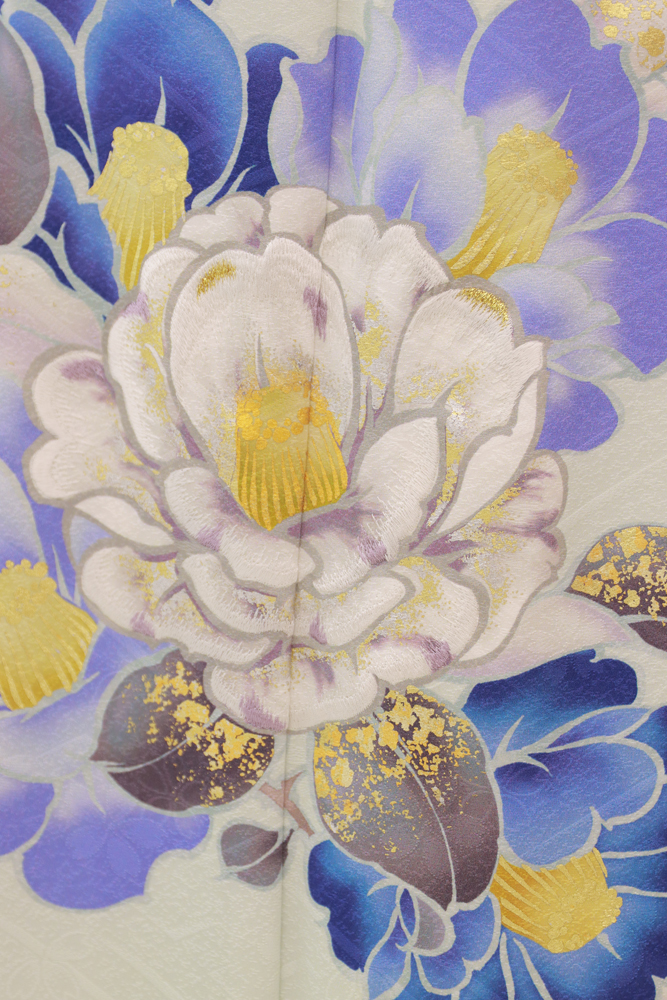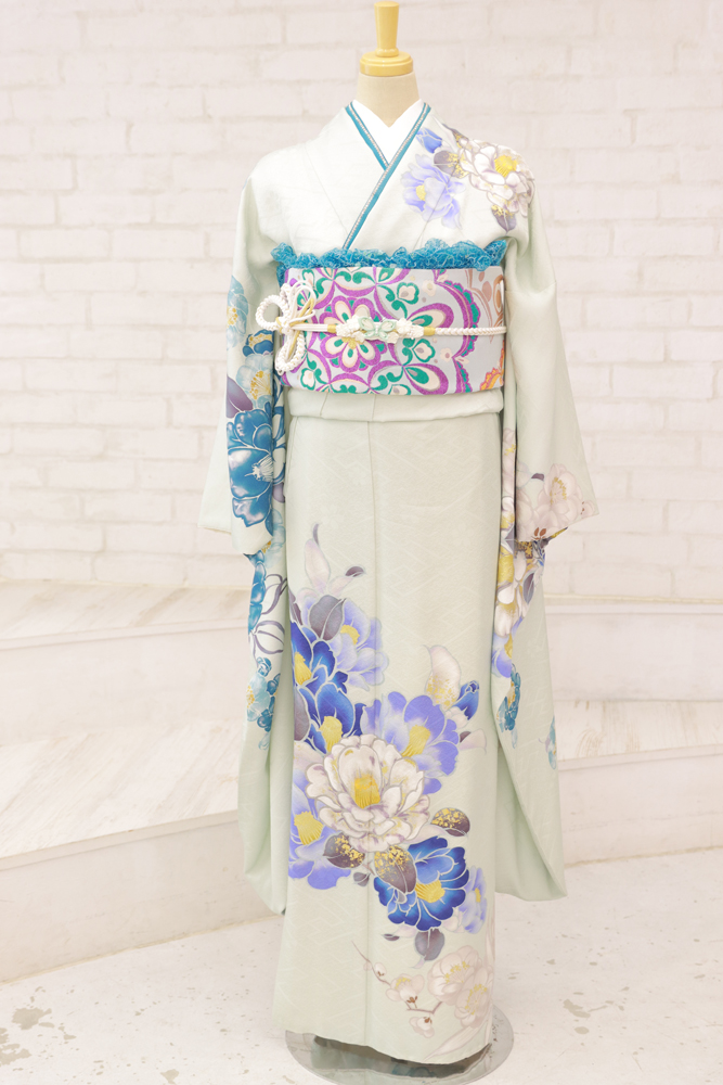 淡い水色に咲く、優雅な大輪の花。気品と透明感を兼ね備えた振袖です!