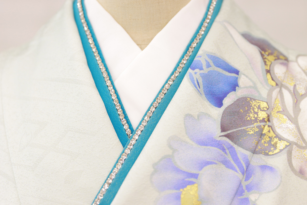 通常、半襟は白になりますが、顔に一番近い場所にあるため、刺繡やレースなどを付けて華やかにすることも可能です。