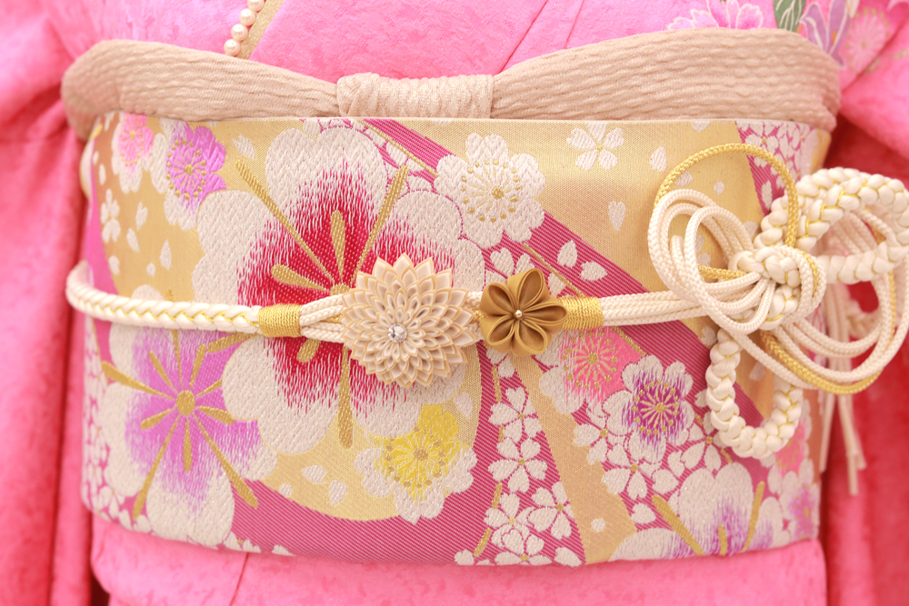 今回は、振袖のピンク色に合わせて、帯も同色コーディネートしてみました!!