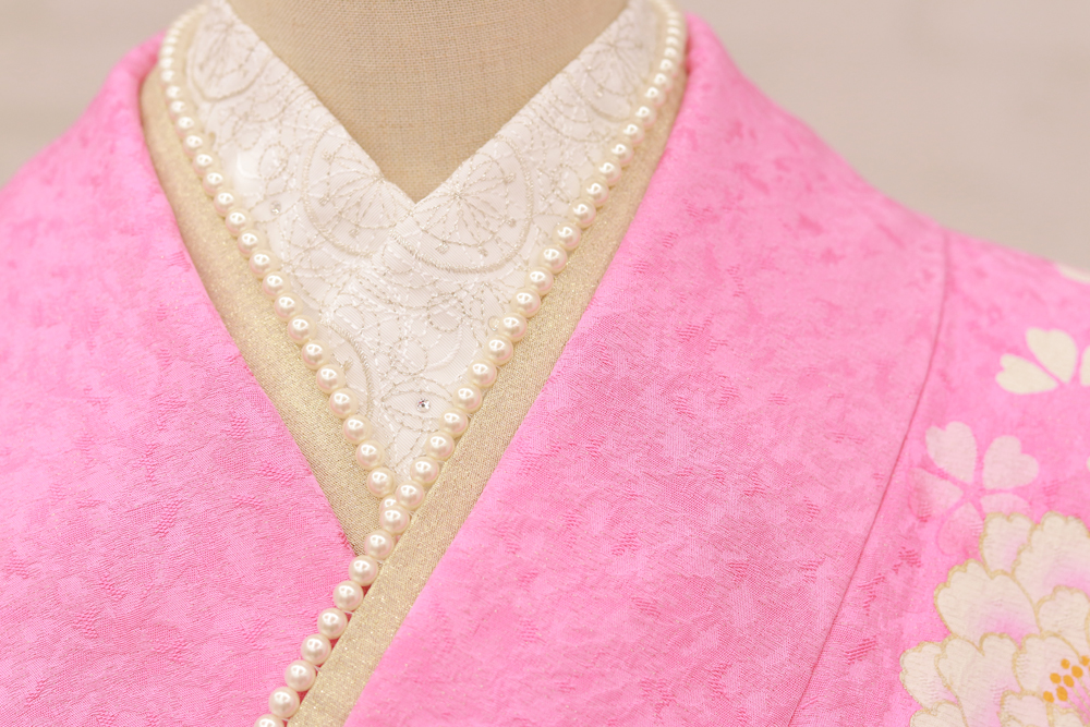 通常、半襟は白になりますが、顔に一番近い場所にあるため、刺繡やレースなどを付けて華やかにすることも可能です。
